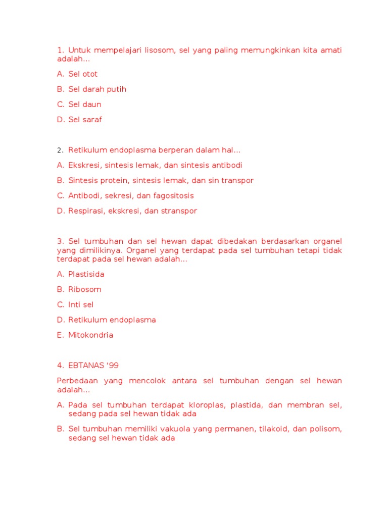 Soal Dan Pembahasan Organel Sel Hewan Dan Tumbuhan - Source